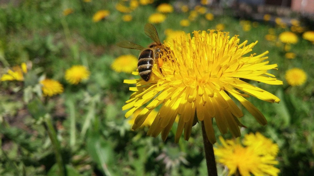 не ожидал, пчела села в тот момент когда я фоткал одуванчик..потом на фото только увидел)